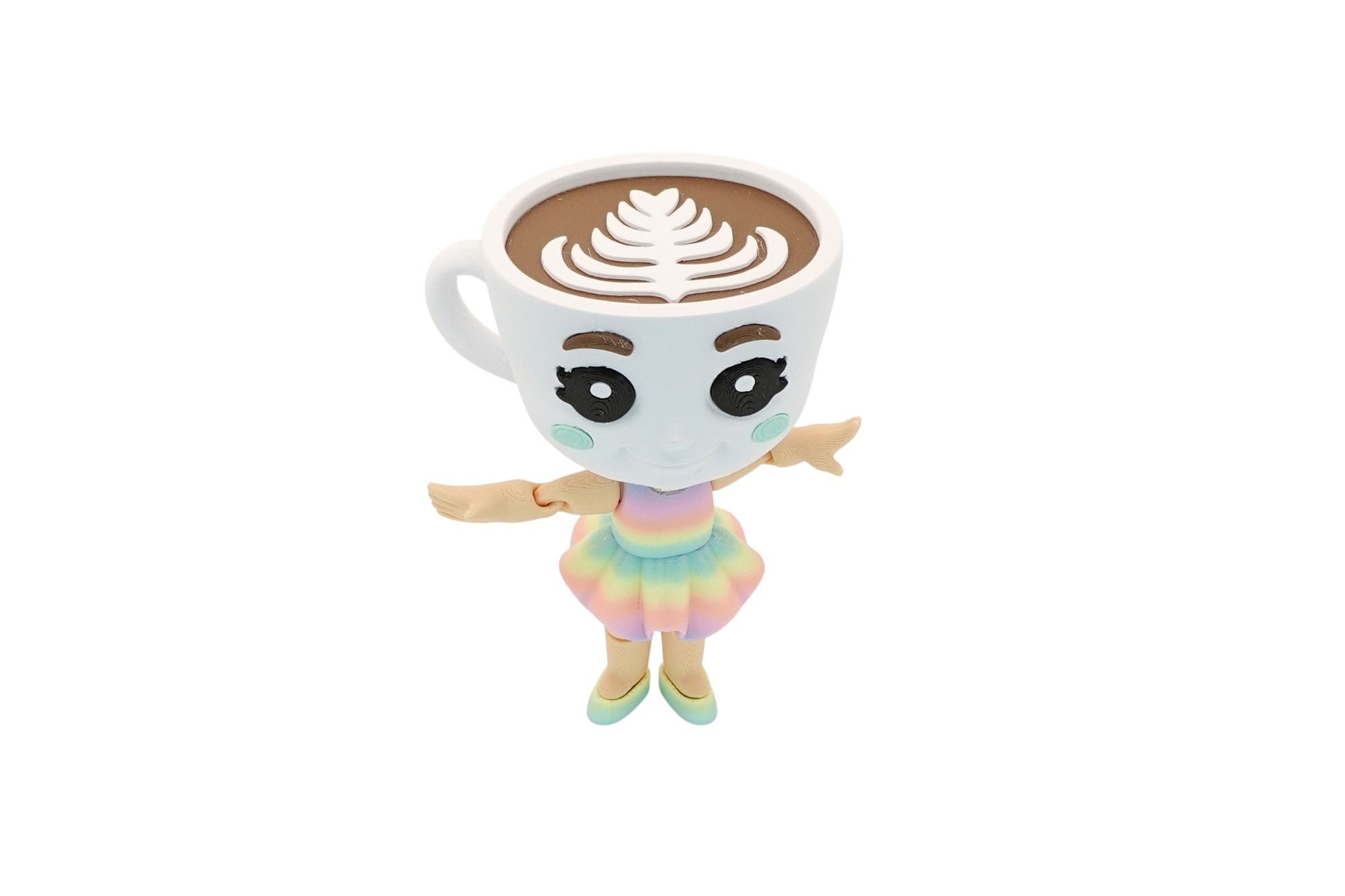 🎨 3D-printed with silly detail – from her tutu twirl to her foamy cappuccino crown, every feature is made to amuse.